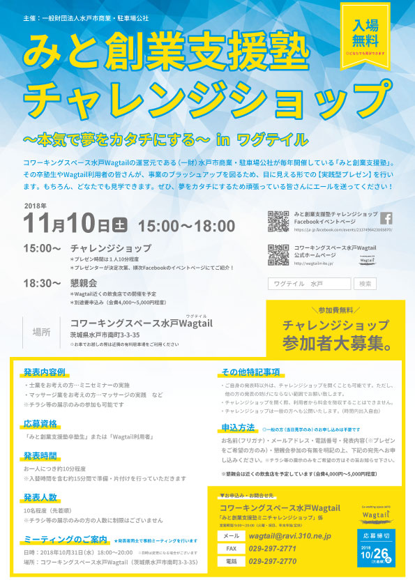 「みと創業支援塾卒塾生」または「Wagtail利用者」