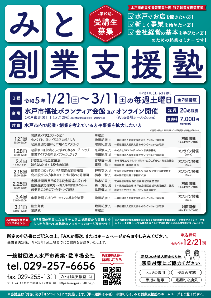 【受付終了】令和4年度「第19回 みと創業支援塾」受講生募集