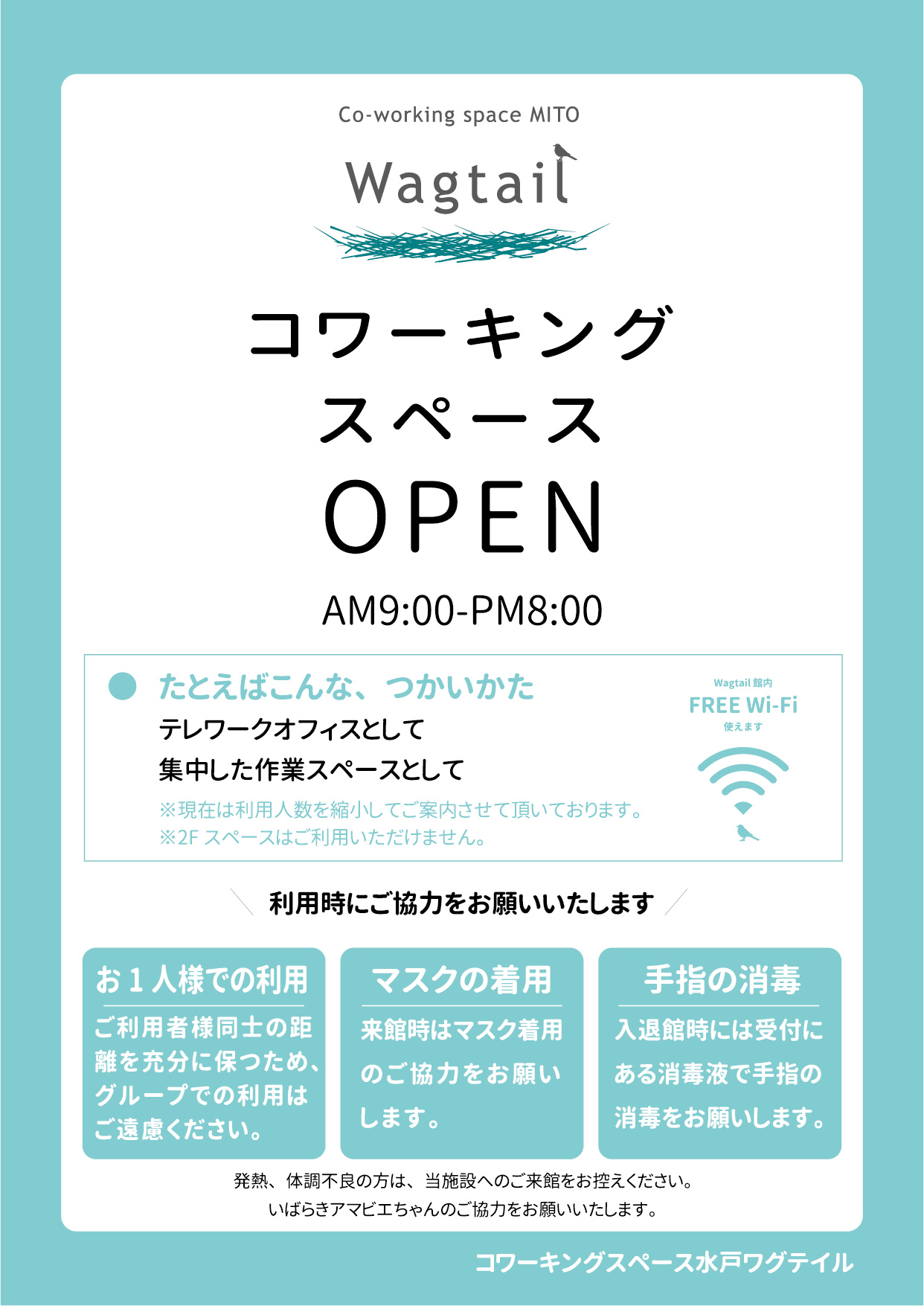 平素、コワーキングスペース水戸ワグテイルをご利用頂きありがとうございます。