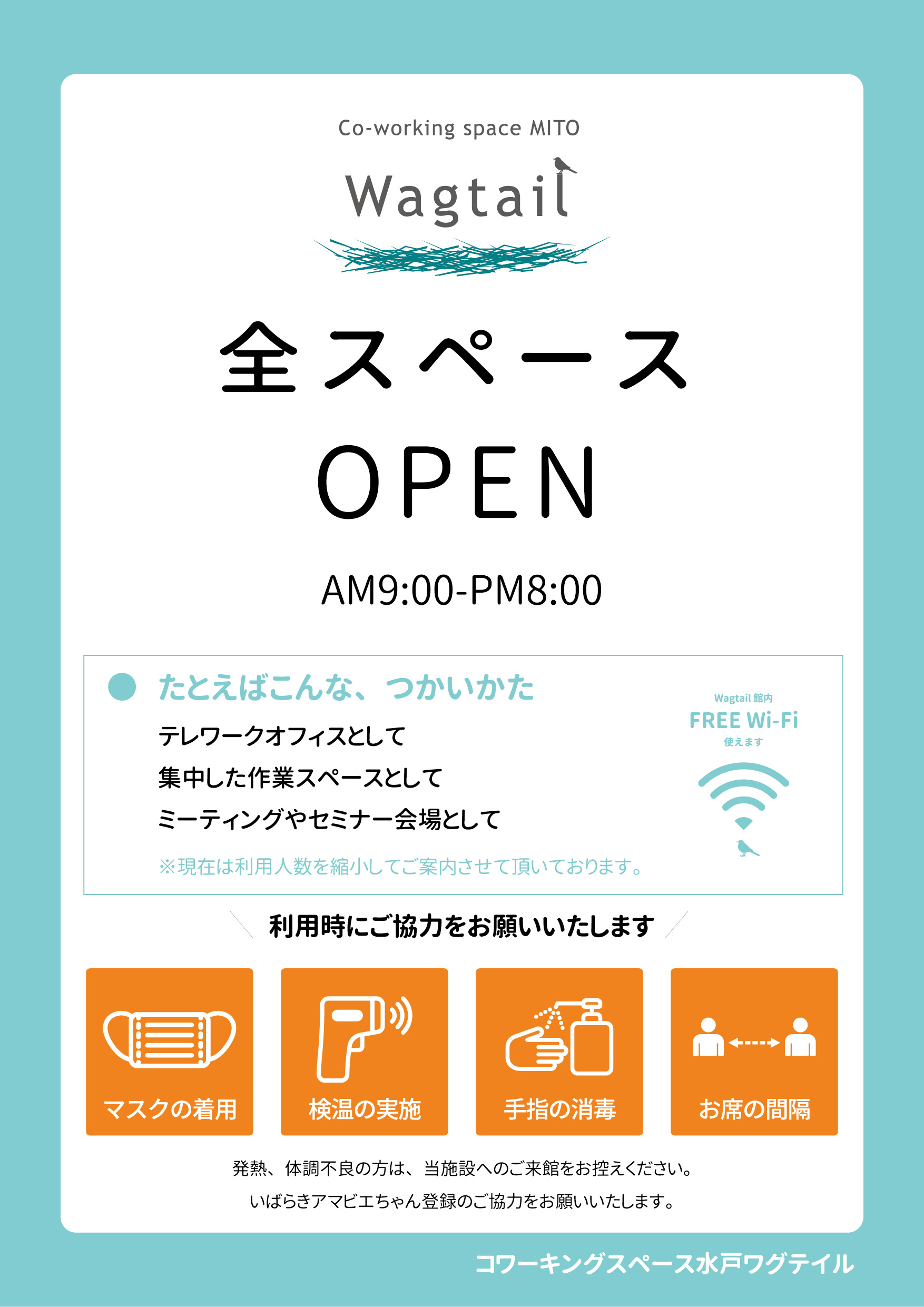 平素、コワーキングスペース水戸ワグテイルをご利用頂きありがとうございます。