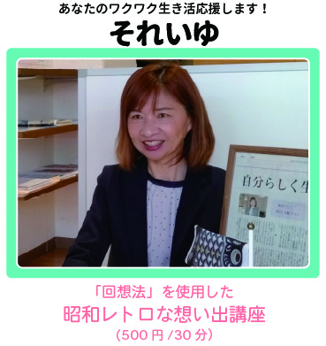 「回想法」を使用した昭和レトロな想い出講座(500円/30分)
