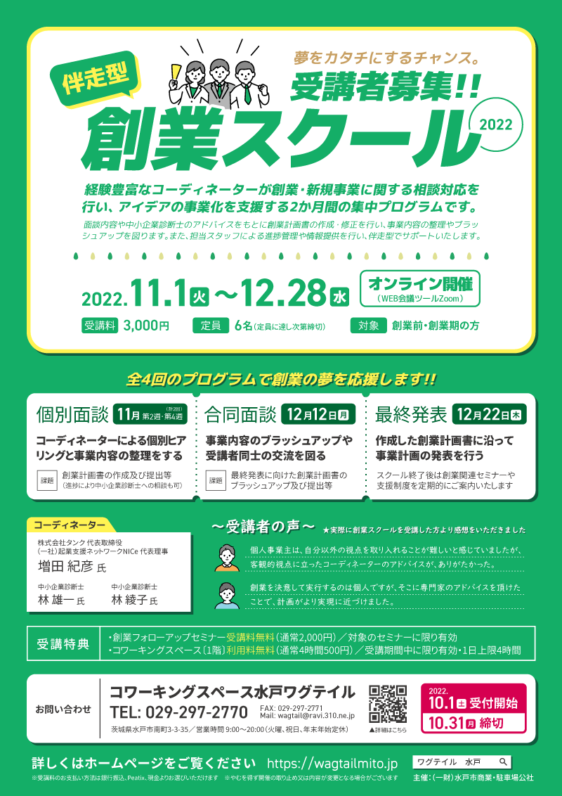 コワーキングスペース水戸ワグテイルは、2016年3月のオープン以来、様々なセミナーやイベントを開催してきました。