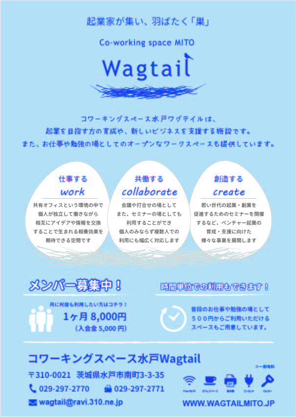 コワーキングスペース水戸ワグテイルには込められているのです。