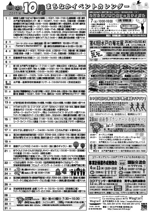 ※2017年10月発行のイベントカレンダーにおいて、次の誤りがございました。