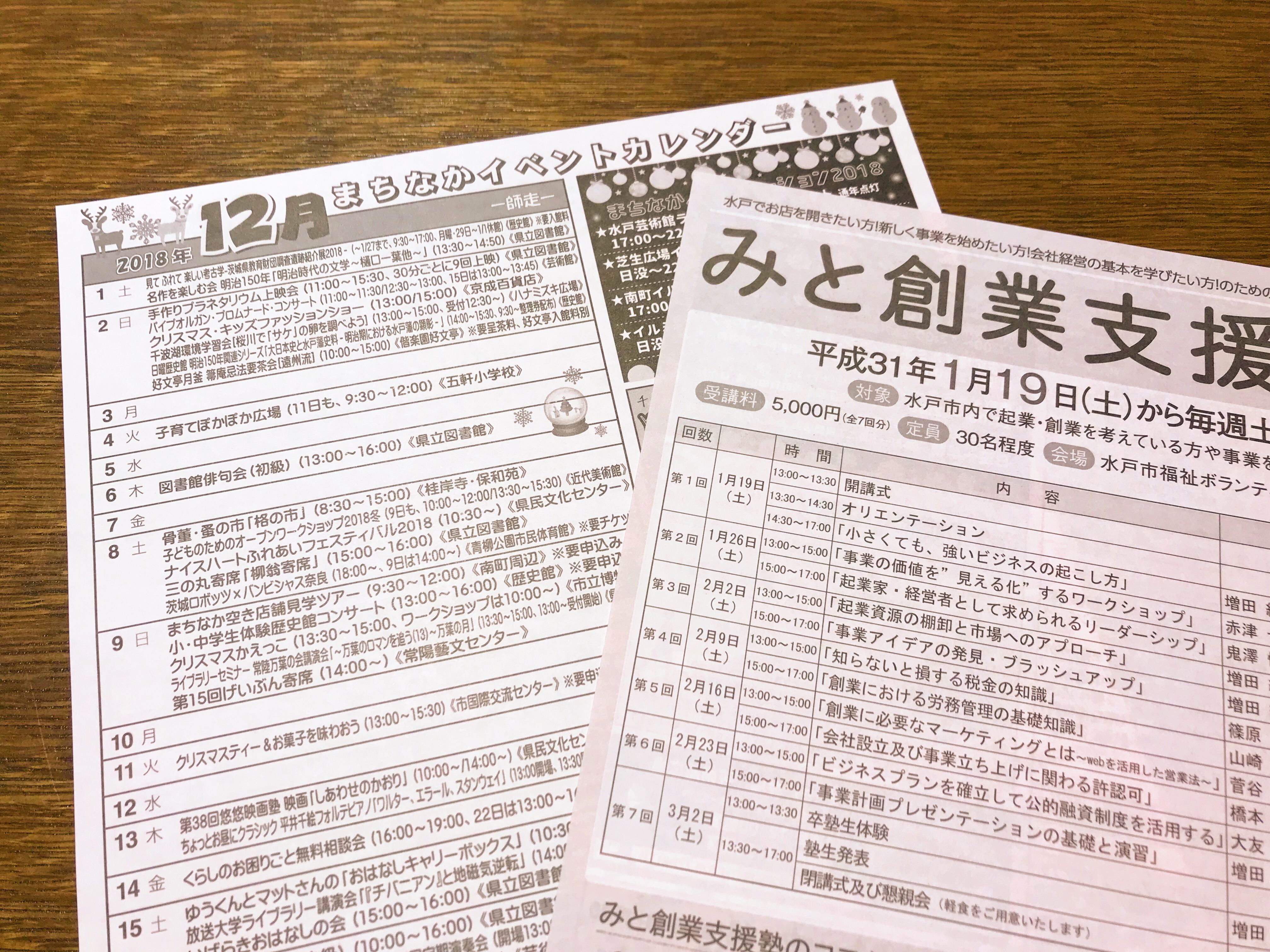 水戸の中心市街地のイベント情報を一枚にまとめた