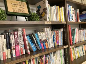 壁面にある書籍コーナーにはビジネスに関するものはもちろんのこと、