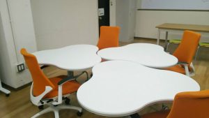 ワグテイルのコワーキングスペースにはもう一つ、不思議な形のテーブルがあります。