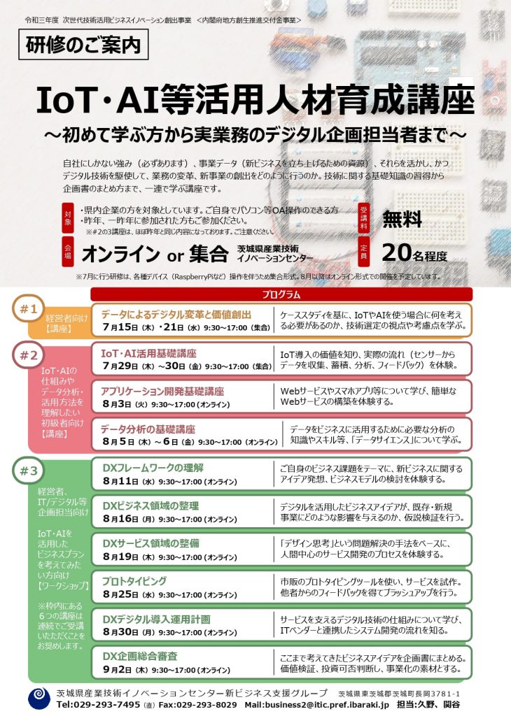 2.IoT・AIの仕組みやデータ分析・活用方法を理解したい初級者向け(7/29、30、