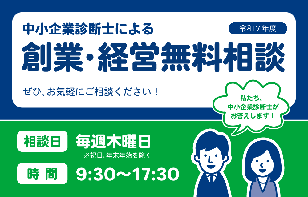 中小企業診断士による無料相談会を毎週木曜日に開催しています。