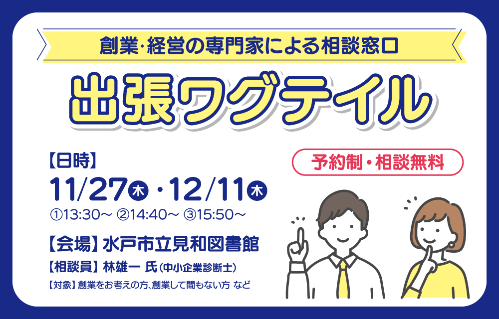 「出張ワグテイル」では、創業や経営の様々なお悩みに対し、