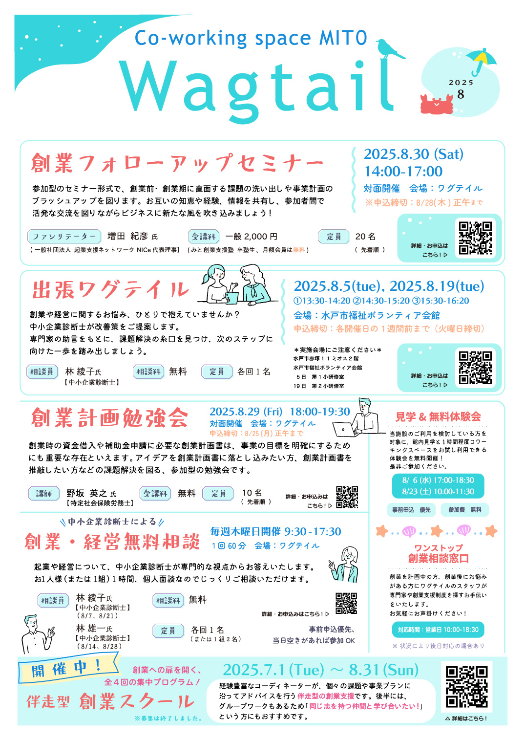 7月1日(火)~8月31日(日) 伴走型 創業スクール